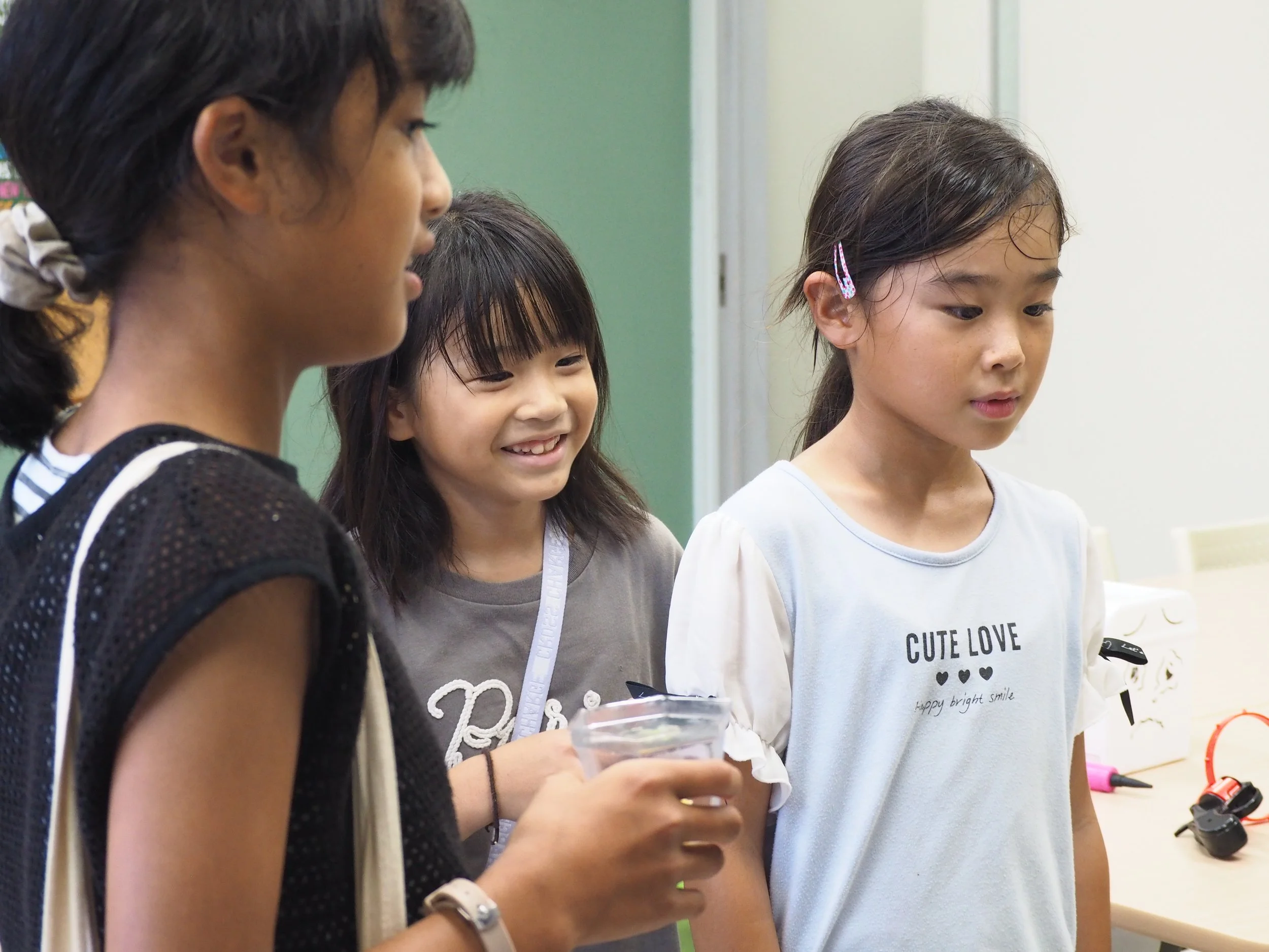 英語に対する自信、リスニング力、簡単なスピーキング力、そしてリーディング力の基礎を育むことを大切にします。