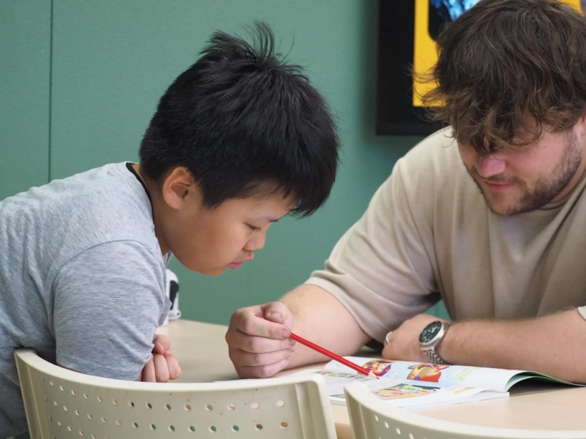 低学年の生徒さんには音声学を基盤とした発音とリスニングの土台づくりを重視し、基礎が身についた生徒さんには文法や構文への理解を深め、英語の仕組みを体系的に学びます。グループレッスンでは「読む・書く・聞く・話す」の4技能をバランスよく取り入れ、実際の文脈の中で英語を使える力を育てます。